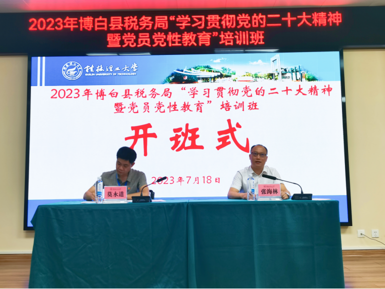 7月18日,2023年博白县税务局“学习贯彻党的二十大精神暨党员党性教育”培训班(第三期)在我校顺利开班。国家税务总局博白县税务局副局长莫永道,我校2138CC太阳集团副院长张海林以及来自博白县税务局的近50位学员参加了开班式。
