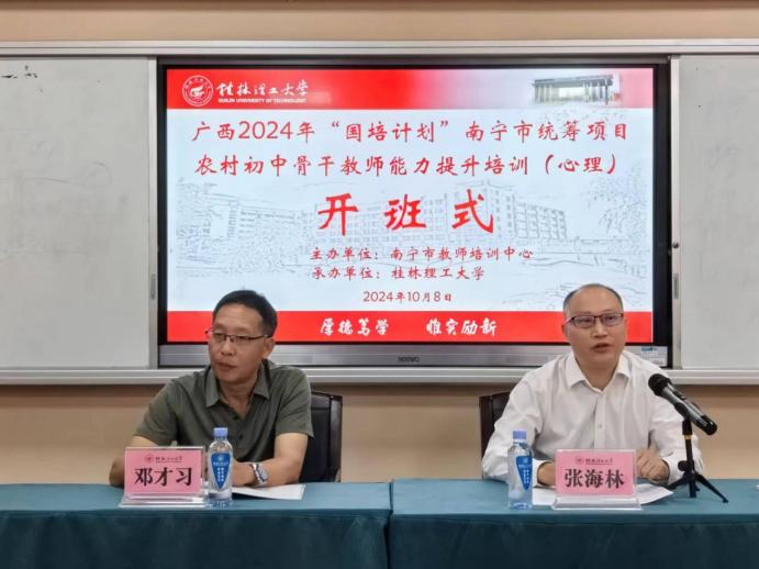 10月8日下午,广西2024年“国培计划”南宁市统筹项目——农村初中骨干教师能力提升培训班(心理)在我校顺利开班。南宁市教师培训中心副主任邓才习、2138CC太阳集团2138CC太阳集团副院长张海林及来自南宁市的70余位初中心理骨干教师参加了开班式。