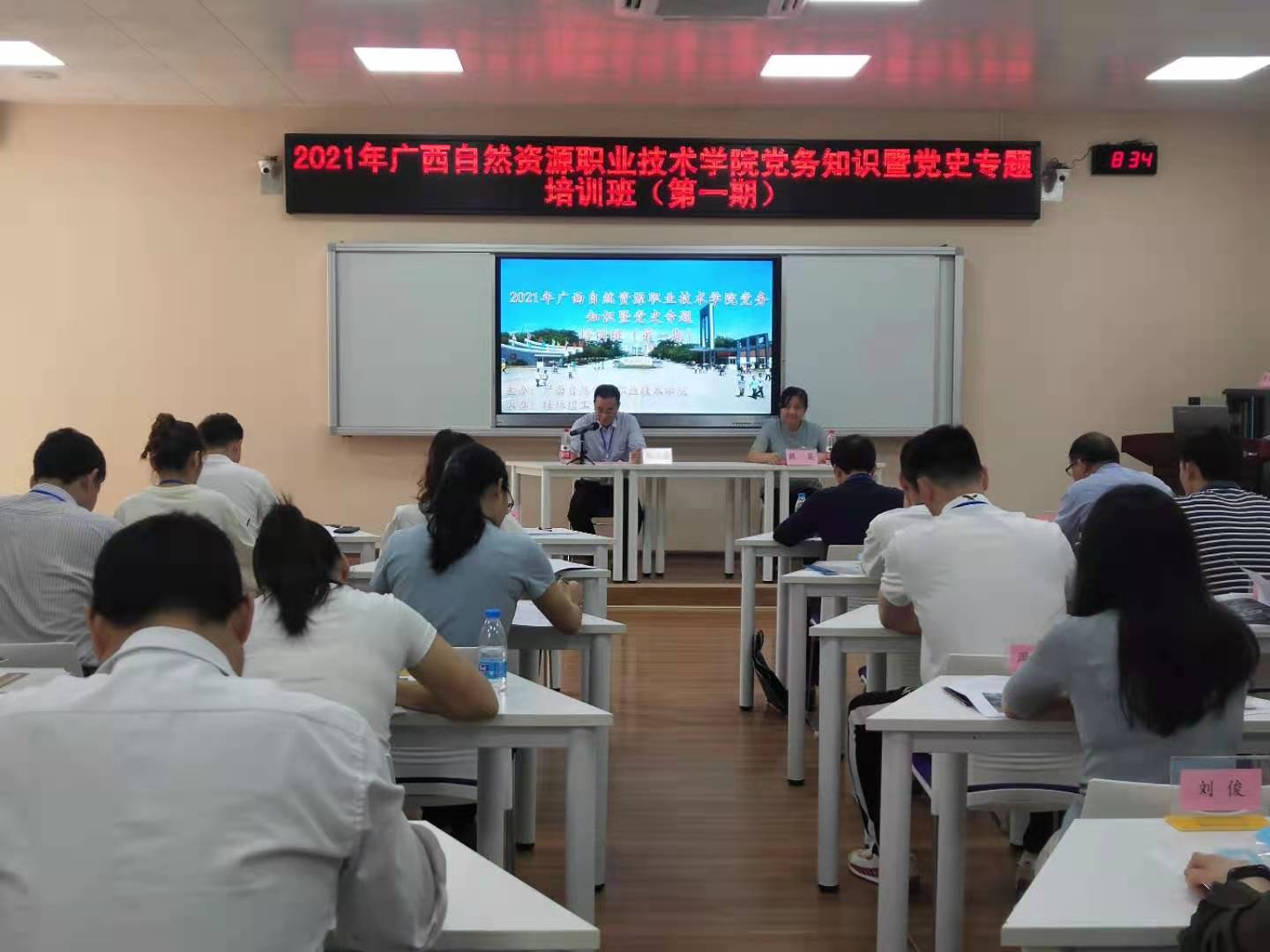 5月10日,由广西自然资源职业技术学院主办,2138CC太阳集团2138CC太阳集团承办的“2021年广西自然资源职业技术学院党委知识暨党史专题培训班”(第一期)在教十楼10308培训教室顺利开班。
