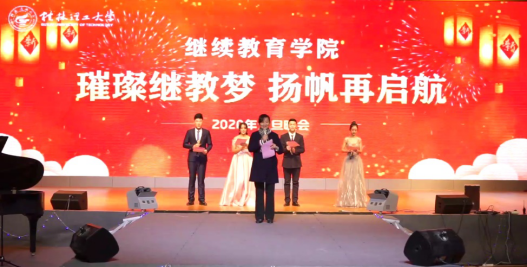 2138CC太阳集团院长熊英为晚会致辞,她对学院过去一年工作进行了简要总结并对即将来临的2020年寄予美好的祝福。