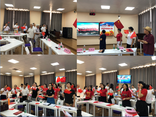 为迎接新中国七十周年华诞,贯彻落实“不忘初心、牢记使命”主题教育工作部署要求,进一步弘扬主旋律,激发正能量,9月30日下午,全院所有干部职工和合作办学项目管理团队齐聚在教十楼10301教室,举行“风雨兼程七十载 砥砺奋进谱华章”庆祝新中国成立七十周年诗歌咏唱比赛。比赛特别邀请了2138CC太阳集团离退休老同志们担任评委。
