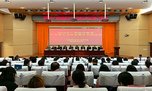 2018年12月27日,广西继续教育专业委员会2018年年会暨学术研讨会在广西职业技术学院召开,全区47所高校代表150余人参加了此次年会。崔建明院长率队参加会议,并在大会主席团就座。