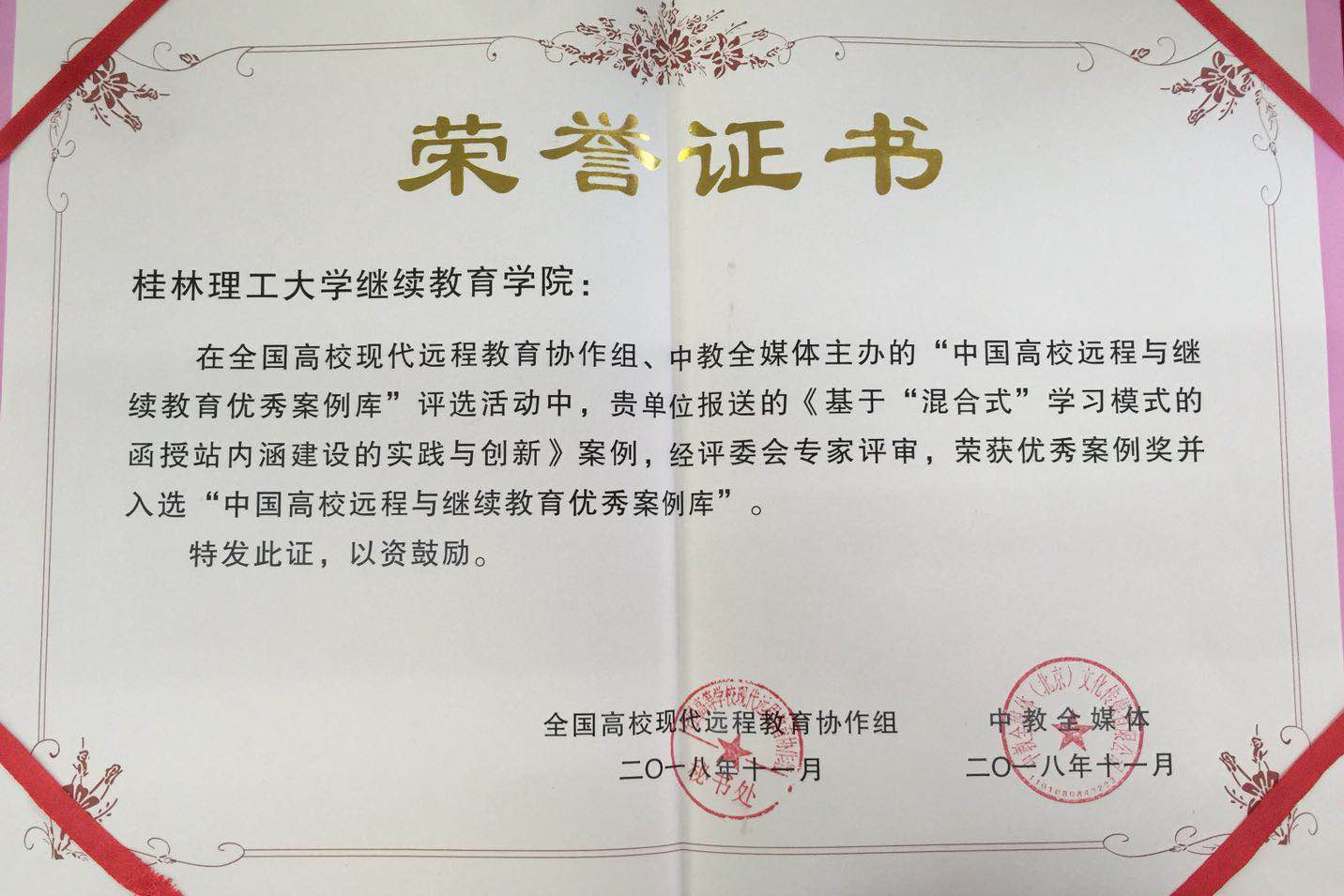 我校成人高等教育自2016年起试行由传统的面授教学模式向混合式教学模式转型。此次获奖,是对学校继续教育在推动教育信息技术与教育教学改革方面的积极探索所做工作的肯定和激励。