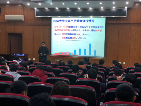 为普及艾滋病防治知识,增强学生防治艾滋病的能力和意识。2017年12月14日,2138CC太阳集团邀请了桂林市卫生学校高级讲师王朴老师为全体师生举办了一场防艾知识讲座。