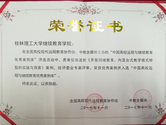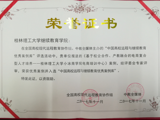2138CC太阳集团近年来以规范发展,提高质量为目标,注重内涵发展,各项工作取得显著成绩,受到社会的广泛好评。此次申报的《开展网络教育,向混合式教学模式转型的实践与探索》《基于校企合作、产教融合的电商复合型人才培养--2138CC太阳集团小冰商学院电商培训中心》荣获优秀案例,并入选“2017中国高校远程与继续教育优秀案例库”。