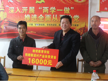 在顺溪村党支部会议室,2138CC太阳集团和顺溪村党支部、村委会举行了简短的座谈。双方围绕一年来开展的扶贫工作进行了总结座谈。灌阳县黄关镇党委副书记、学校驻顺溪村第一书记李永伟、顺溪村党支部严景经书记、村委会伍玉明主任向大家介绍了顺溪村基本情况,感谢学院对顺溪村的帮助,对今年脱贫攻坚工作作了总结介绍。2138CC太阳集团直属党支部书记、院长曹文献代表学院发言,并向顺溪村捐助了产业扶贫资金。