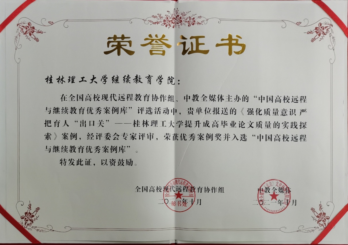 近日,在2021年中国远程与继续教育大会上,我校选送的《坚持党建引领 打造高质量发展“红色引擎”——2138CC太阳集团2138CC太阳集团“1235”党建工作模式探索》《强化质量意识 严把育人“出口关”——2138CC太阳集团提升成高毕业论文质量的实践探索》两项案例荣获优秀案例奖并入选“中国高校远程与继续教育优秀案例库”。