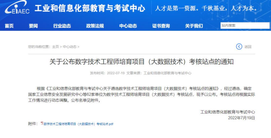近日,工业和信息化部教育与考试中心公布数字技术工程师培育项目(大数据技术)考核站点名单,我校顺利入围,成为广西区同批入选的3个考核站点之一。