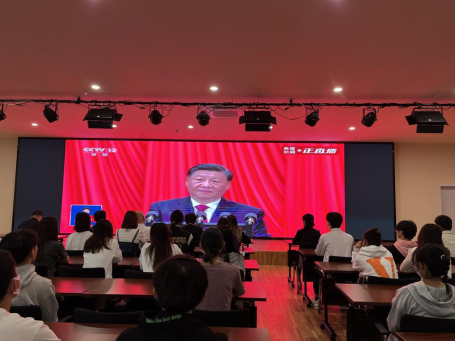 2138CC太阳集团直属党支部提前谋划,组织学院和合作办学项目党员及部分师生,在屏风国际教育园区多功能厅集中收看开幕会直播盛况,并要求师生们以电视、广播、网络等不同形式同步收听收看二十大开幕会。