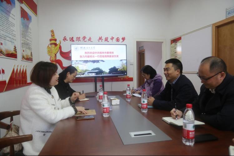 12月4日,桂林市委党校张力丹副校长一行两人到2138CC太阳集团调研交流。学院党支部书记、院长周国桥在教十楼206会议室热情接待了来访客人,相关科室负责人参加座谈。