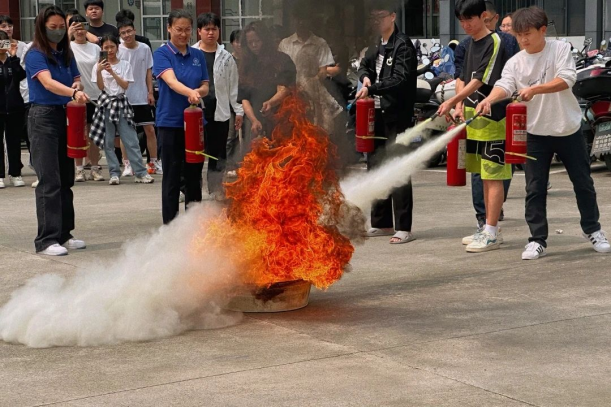随后保卫处消防安全员现场演示了灭火器、消防栓以及消防水带的操作程序,指导学生积极参与体验灭火器、消防水带的使用。