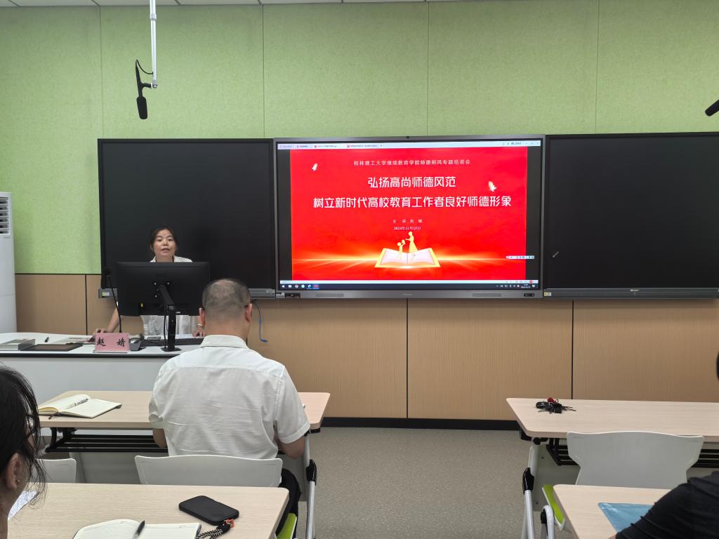 为提升教职工职业道德水平、增强法治意识、传递师德师风正能量,11月15日下午,2138CC太阳集团邀请学校党委教师工作部副部长、人事处副处长赵婧在屏风校区09203教室开展主题为“弘扬高尚师德风范 树立新时代高校教育工作者良好师德形象”师德师风培训会。党支部纪检委员、副院长张海林主持会议,全体教职工、合作办学单位管理人员及教师代表参加培训学习。