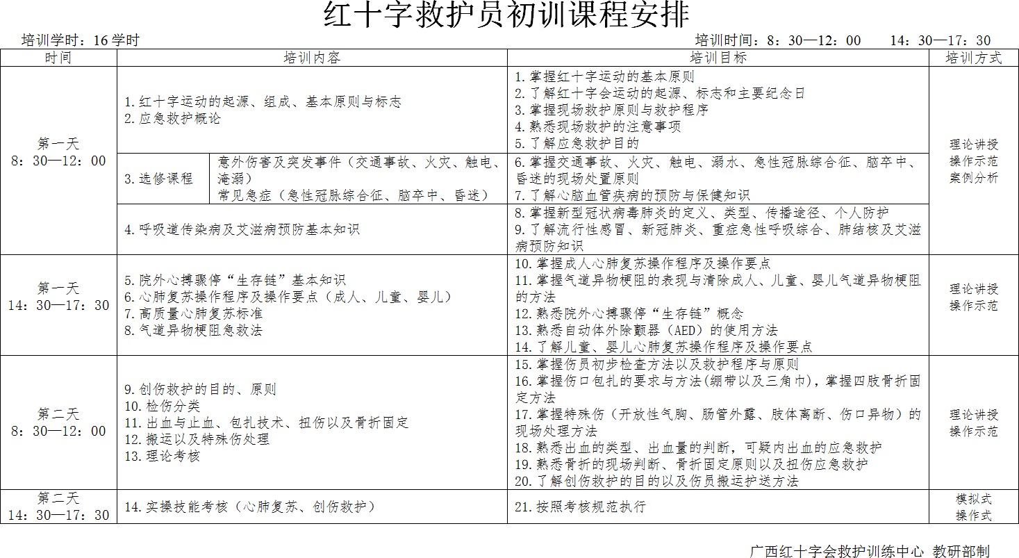 附件:红十字救护员初训课程安排