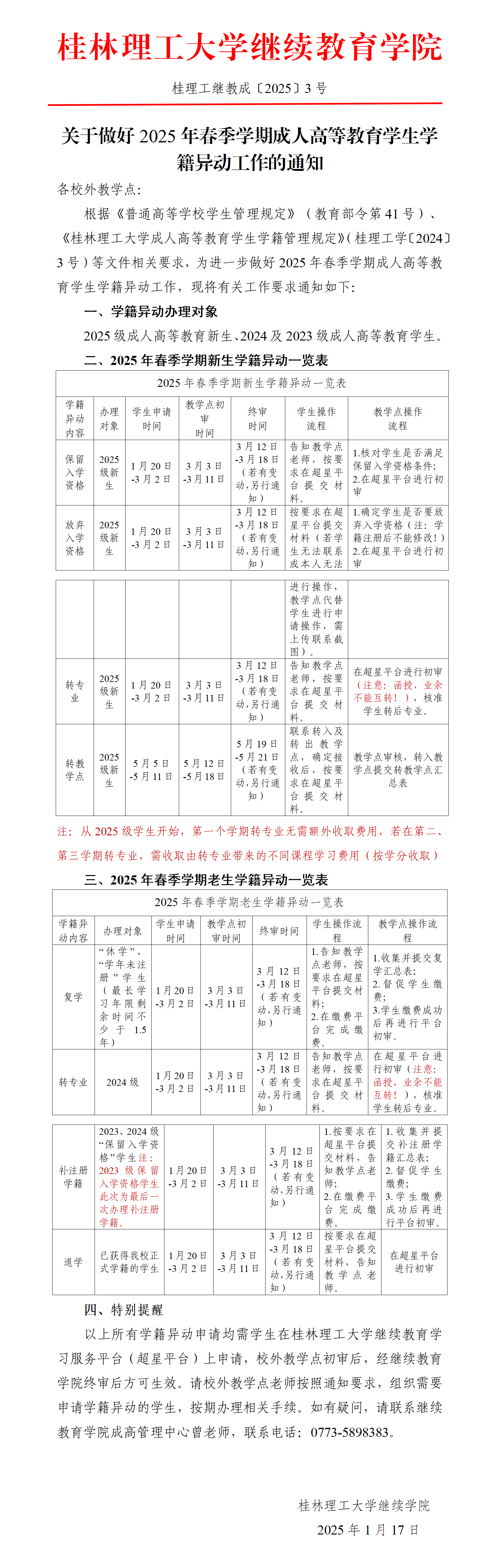 关于做好2025年春季学期成人高等教育学生学籍异动工作的通知