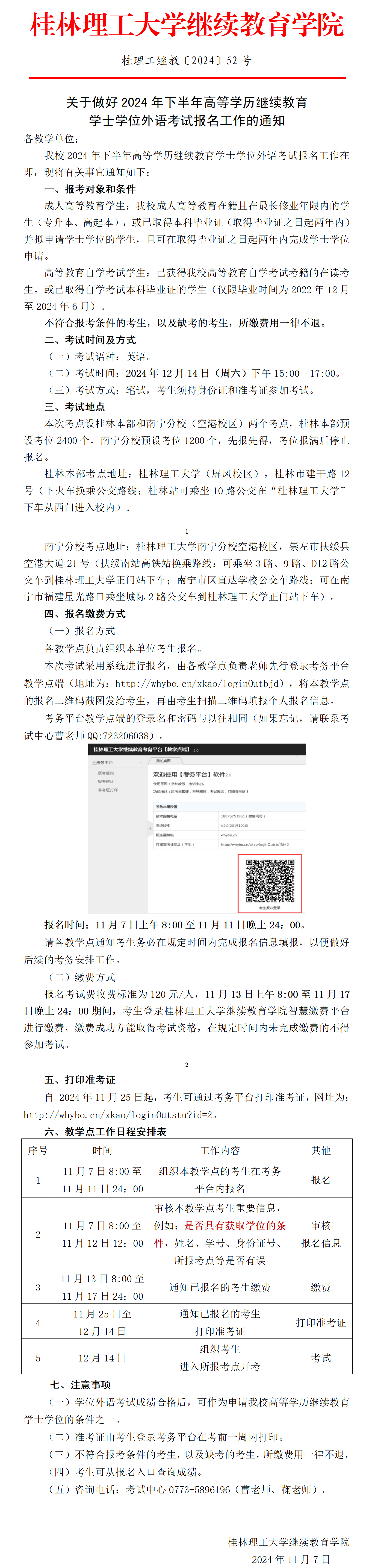 关于做好2024年下半年高等学历继续教育学士学位外语考试报名工作的通知 发布者:自考办(考试中心)) 2024-11-07 已阅人次 (一审:曹俊 二审:徐小卜 三审:李衡) 上一条:关于做好2024年下半年高等学历继续教育学士学位外语考试延期的通知 下一条:2024年9月全国计算机等级考试2138CC太阳集团考点报考通知 关注我们