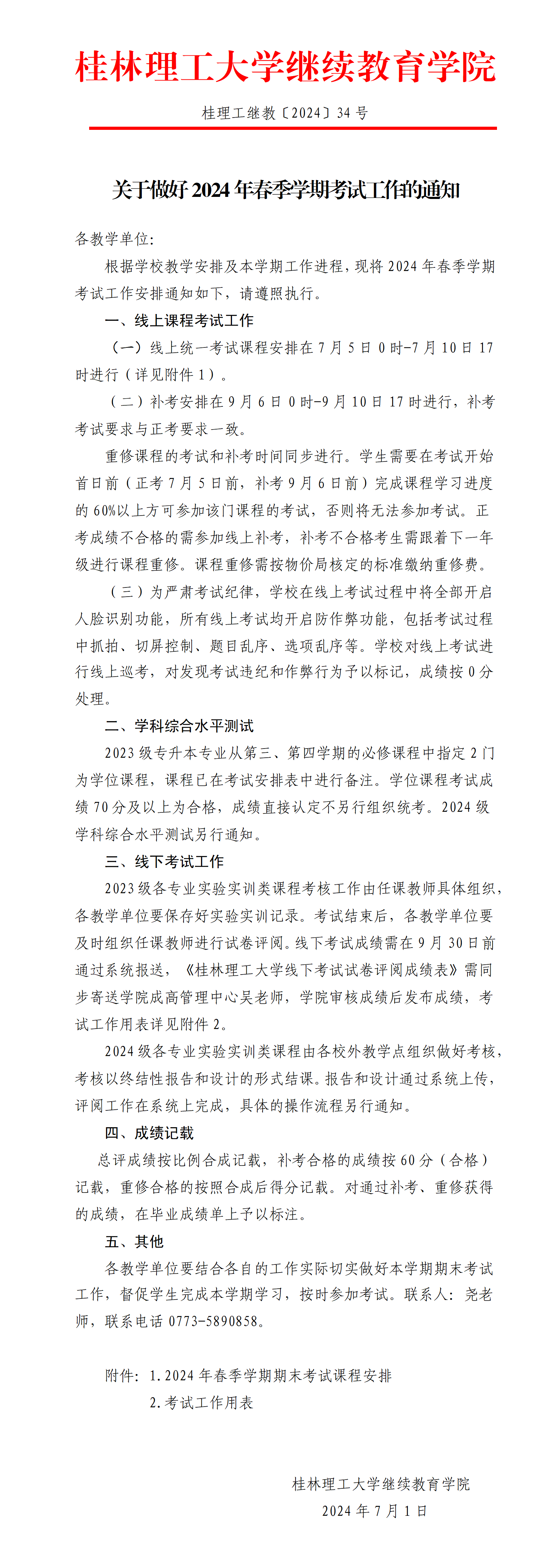 关于做好2024年春季学期考试工作的通知 发布者:成高管理中心 2024-07-01 已阅人次 (一审:尧田坤 二审:林文钊 三审:李衡) 上一条:关于做好 2024年秋季学期成人高等教育有关工作的通知 下一条:关于表彰2138CC太阳集团高等学历继续教育2024年优秀毕业生的决定 关注我们