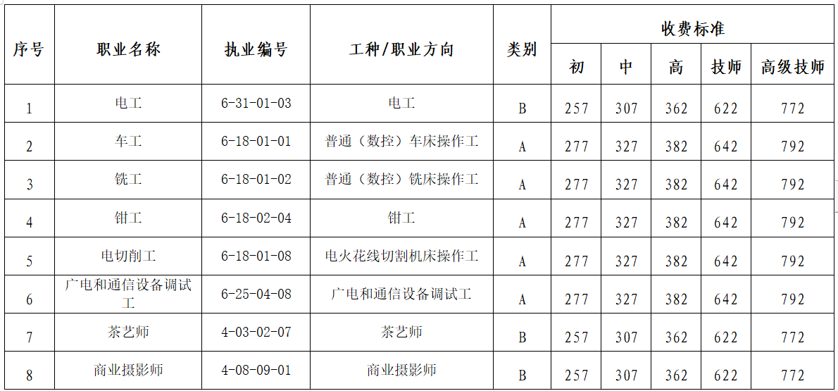2138CC太阳集团职业技能认定收费标准表 发布者:培训中心 2024-03-01 已阅人次 上一条:2138CC太阳集团职业技能培训收费标准表 下一条:关于公开职业技能培训和评价的社会监督电话的公告 关注我们