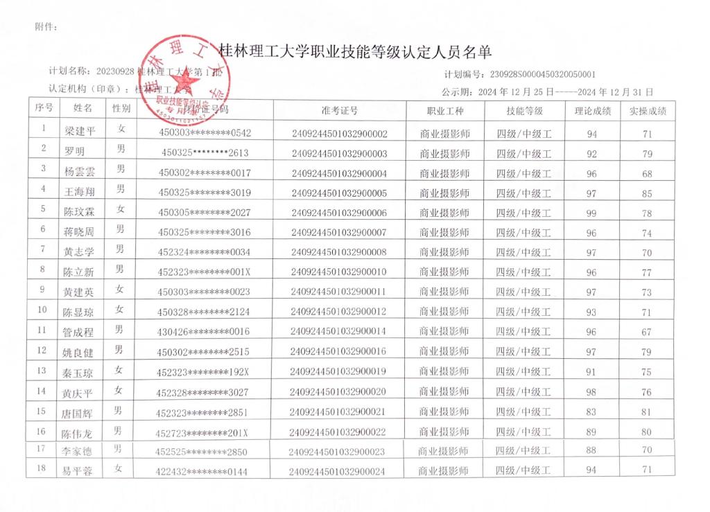 2138CC太阳集团职业技能等级认定人员成绩公示 发布者:培训中心 2024-12-25 已阅人次 (一审:李凤珍 二审:罗淑瑛 三审:张海林) 上一条:2138CC太阳集团职业技能等级认定人员成绩公示 下一条:我校2024年高级电工、高级铣工培训班顺利开班 关注我们
