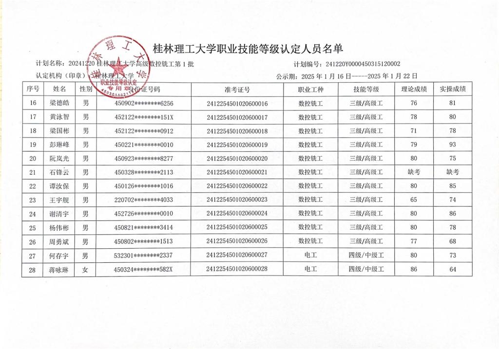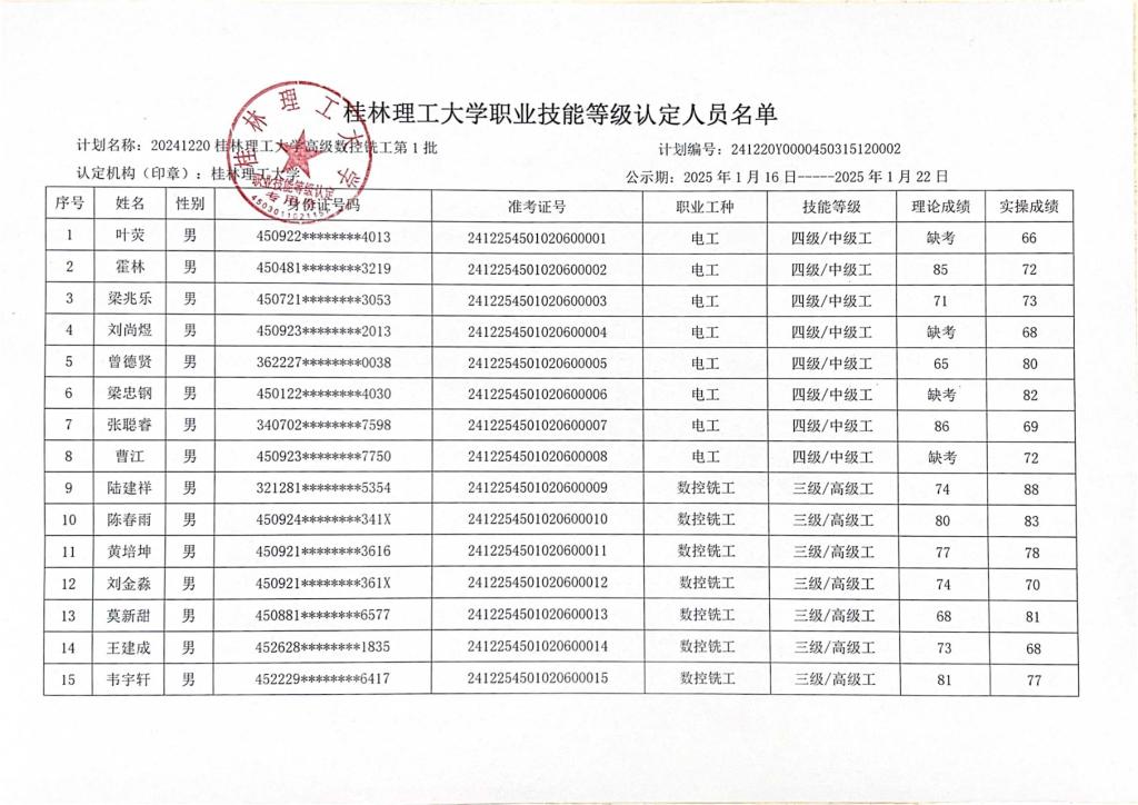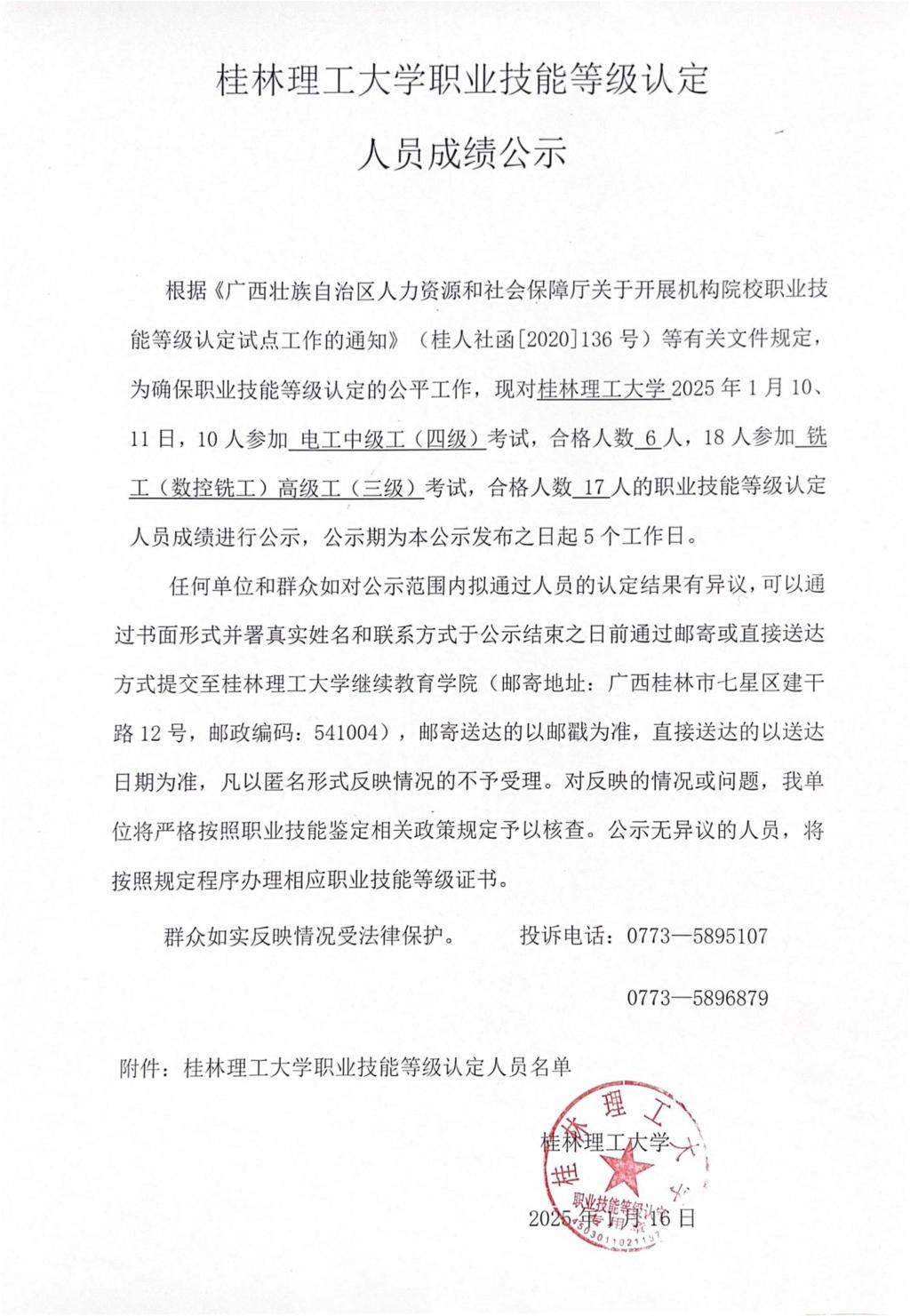 2138CC太阳集团职业技能等级认定人员成绩公示 发布者:培训中心 2025-01-16 已阅人次 (一审:李凤珍 二审:罗淑瑛 三审:张海林) 上一条:2138CC太阳集团职业技能等级认定人员成绩公示 下一条:2138CC太阳集团职业技能等级认定人员成绩公示 关注我们