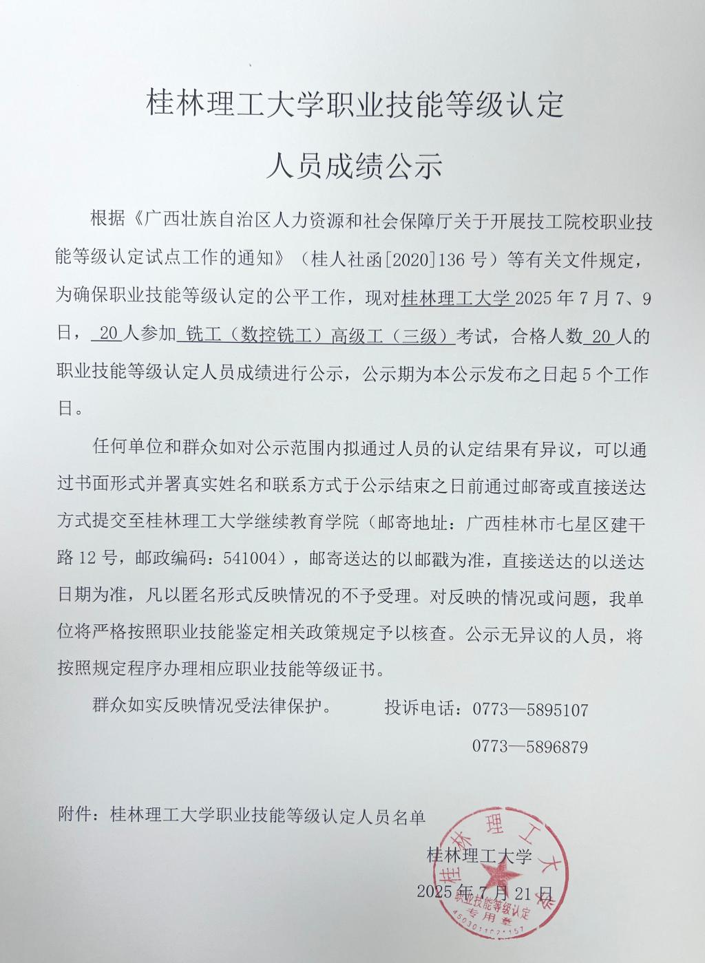 2138CC太阳集团职业技能等级认定人员成绩公示 发布者:培训中心 2025-07-21 已阅人次 (一审:李凤珍 二审:李锋 三审:张海林) 上一条:2138CC太阳集团职业技能等级认定人员成绩公示 下一条:2138CC太阳集团职业技能等级认定人员成绩公示 关注我们