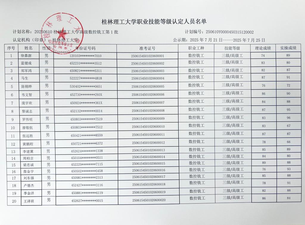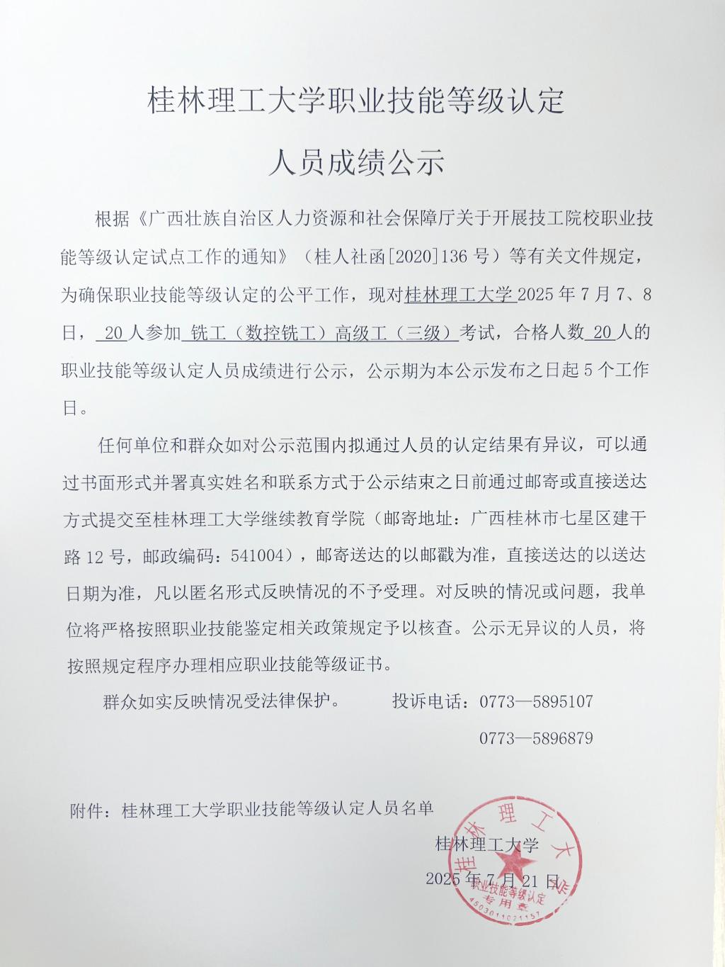 2138CC太阳集团职业技能等级认定人员成绩公示 发布者:培训中心 2025-07-21 已阅人次 (一审:李凤珍 二审:李锋 三审:张海林) 下一条:2138CC太阳集团职业技能等级认定人员成绩公示 关注我们